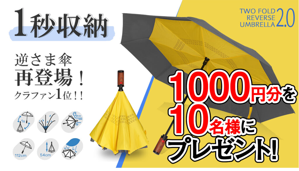逆さ傘『TWO FOLD REVERSE UMBRELLA 2.0』サポーター様1,000人突破記念、Twitterキャンペーン開催